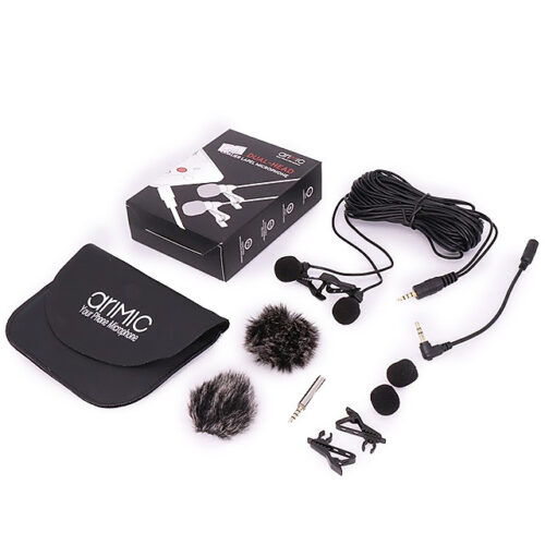 Giới thiệu sản phẩm : Micro Thu âm cài áo Arimic – Dùng cho điện thoại và máy ảnh Thiết kế đặc biệt cho thu âm giọng nói với việc làm video từ điện thoại hoặc máy ảnh. Cặp micro Arimic có khả năng thu âm ngoài trời với nhiều thiết bị quay phim thông dụng. TÍNH NĂNG CƠ BẢN – Bao gồm 02 micro thu âm cùng lúc phục vụ cho việc phỏng vấn, làm phim, review sản phẩm, làm video Youtube, – Thiết kế để sử dụng được với Smart phone, ipad, máy quay, máy ảnh, – Sản phẩm cho âm thanh trong sáng, không tạp âm – Dây dài 6m BỘ SẢN PHẨM BAO GỒM 02 Microphone cài ào 04 Clip cài áo 04 Bông lọc micro 01 Giắc chuyển micro điện thoại 01 Cáp chuyển cho máy ảnh DSLR 02 Bông lọc lông chó (chắn gió) 01 Bao da dựng sản phẩm