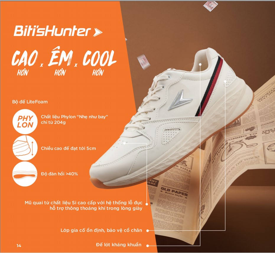 - Bên cạnh đó, dòng cao cấp Biti’s Hunter X LiteFlex tiếp xúc kế thừa những ưu điểm vượt trội về mặt công nghệ và thiết kế từ các phiên bản tiền nhiệm: